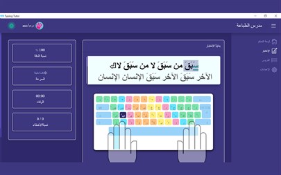 Arabic Typing Tutor is an application that offers the opportunity to learn touch typing in Arabic, learn the technique to touch type in Arabic with ease. Intended for all age-ranges, both children and adults can start learning at their own paste. For your greater happiness and unlike the majority of solutions of this type, this application targets arabic and non-arabic native speaking, the application interface is available in Arabic, English and French(coming soon). With Arabic Typing Tutor, You have by default, a set of practical lessons that increases in difficulty throughout your progess.