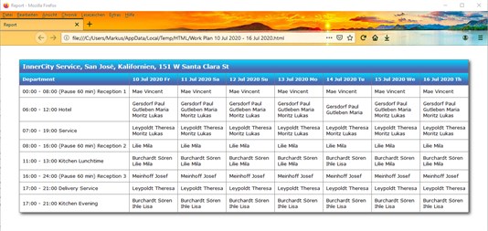 Mit dieser Software können Sie einen Dienstplan erstellen wenn Sie täglich wechselne Mitarbeiter haben und flexibel den Abteilungen zuordnen müssen. Jeder Abteilung kann man (optional) Fähigkeiten zuordnen die erfüllt sein müssen beim Personal zuordnen. Diese Fähigkeiten werden auch beim Personal hinterlegt. Wird die Mitarbeiter Anzahl eingetragen die man braucht (optional) wird die Abteilung mit Rot oder Grün gekennzeichnet. Wenn man ein Mitarbeiter in der Auswahl Liste selektiert wird direkt angezeigt in welcher Abteilung er arbeiten kann. Dieses Programm unterstützt auch mehrere Firmen & Standorte das Personal ist aber nicht fest zugeordnet sondern zur freien Auswahl. Abwesenheitstage wie Urlaub, Krank, Fortbildung kann man hinterlegen und diese werden bei der Personalauswahl als Information mit angezeigt. Eine Übersicht wer wann wo arbeitet läßt sich per HTML Datei ausgeben und im Web Browser (Firefox, Edge, Chrome, Opera) ansehen und von dort drucken. Diese Tabelle ließ sich nicht in feste Maße pressen. Eine Personalliste ließe sich für den Anfang über die Zwischenablage einlesen. Die Programmoberfläche ist zu 99% auf Deutsch. Bitte lesen Sie die Kurzanleitung welche vom Programm Menü erreichbar ist.