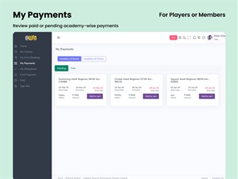 AtWin is a cloud-based sports management platform that empowers sports academies by transforming their operations and enhancing customer experience. Here are some key features of AtWin: 1. Digitized Operations: • Faster registrations and super-quick payments. • Direct transfer for seamless efficiency. • QR and location-based attendance tracking. 2. Seamless Communication: • Coaches, players, and staff can communicate via in-app notifications, SMS, WhatsApp, or emails. 3. Revenue Recovery Features for Super Admins: • Early bird discounts: Encourage timely registrations. • Personalized payment reminders: Minimize payment delays. • Gift certificates: Boost revenue. • Referral programs: Attract new customers. • Integrated UPI payment gateway: Facilitate online payments. 4. Super Admin Dashboard: • Review revenue and payment dues. • Manage player and staff attendance. • Monitor coaching programs and court bookings. • In-house store management. 5. Coaches’ Capabilities: • Take attendance for themselves and their players. • Manage class schedules. • Communicate seamlessly with players. 6. Player Features: • Review ongoing classes and attendance. • Manage pending and paid payments. • Discover new programs and court bookings. • Join programs by making online payments.
