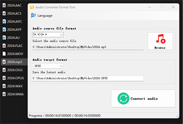 The interface is simple, there are no too many complicated operations, you only need to select the audio file, and then select the format you need to convert to the destination, and complete it with one click.
