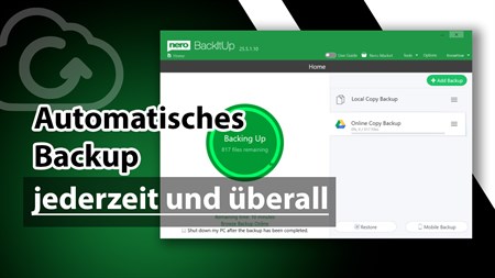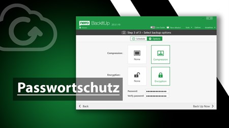 Vollautomatisierung Ihrer Sicherungen Entspannen Sie jetzt, wohl wissend, dass Ihre Dateien geschützt sind: Sichern Sie Ihre Dateien täglich, wöchentlich, monatlich – oder wann immer Sie wollen! Stellen Sie einfach eine Zeit und ein Datum ein. Sie können sogar eine kontinuierliche Datensicherung einrichten, sodass Nero BackItUp neue Dateien kontinuierlich schützt, wenn Sie Daten aktualisieren. Mehrere Ziele Sichern Sie Ihre Daten lokal auf eine zusätzliche Festplatte oder auf ein externes USB-Laufwerk; oder speichern Sie sie im NAS-System – Sie haben die Wahl! In jeden Fall hilft Ihnen unser Produkt dabei, Ihre Dateien zuverlässig zweifach zu sichern. Jetzt können Sie Ihre Back-ups auch mittels Ihrer Cloud-Speicher "OneDrive" und "Google Drive" ausführen. Natürlich können Daten auf diese Weise auch online wiederhergestellt werden. Damit sind Back-up und Wiederherstellung mit Nero BackItUp nun an jedem beliebigen Ort möglich. *Nur für nicht-kopiergeschützte Medien. Versionsverwaltung Anders als andere Dienste, die nur die jeweils aktuellste Version einer Datei speichern, sichert Nero BackItUp sogar ältere Versionen, die Sie schützen wollen. Wenn Sie eine Datei ändern, werden alle älteren Versionen lokal beibehalten. Selbst wenn Sie also Ihre Datei löschen oder diese beschädigt wird, ist sie stets wiederherstellbar! Verschlüsselung & Komprimierung Sie können sich darauf verlassen, dass Ihre Dateien dank hardware-beschleunigter AES 256-Bit-Verschlüsselung sicher gespeichert sind. Und mit unserem schlauen Komprimierungsalgorithmus können Sie sogar etwas Platz sparen, wenn Sie Ihre Dateien auf der USB-Festplatte speichern.