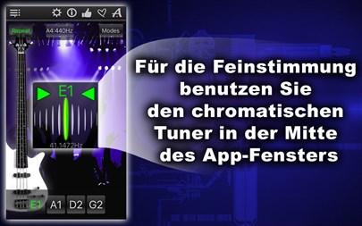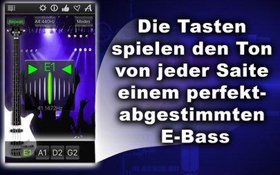 App-Highlights: * Chromatic Tuner mit Audio-Eingang- und Mikrofon-Unterstützung, * 4- und 5-saitige E-Bäss sind unterstützt, * Tongenerator mit dem Original-Klang des E-Basses, * Automatische Wiederholung vom Tönen, * 11 Tonstufen: + Baroque, + Scientific, + France1859, + New Philharmonic, + Concert Pitch, + Boston Symphony Orchestra, + New Berliner Philarmoniker, + Moscow Theater, + Old Berliner Philharmoniker, + Old Philharmonic, + Renaissance.