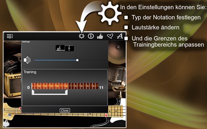 Hier sind die weiteren Gründe für den kauf dieser App: 1. Intuitive und einfach zu bedienende Oberfläche; 2. Kompletter Satz aller E-Bassnoten mit dem authentischen Klang; 3. Integrierte Schreibweisen: Standard (A, B, C) sowie Solfeggio (do, re, mi). 4. Bassschlüssel, einschließlich Kreuz (Erhöhungszeichen) und B (Erniedrigungszeichen); 5. Jede einzelne Note wird abgespielt; 6. Die Möglichkeit, deinen E-Bass mit der Hilfe von den Saitenklängen der Noten Explorer zu tunen; 7. Anzeige der gesamten Trainingszeit.
