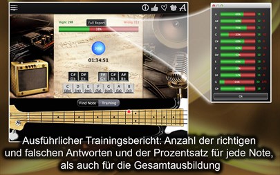 Der “Noten Trainer” fragt die angezeigten Noten ab, zeigt Dir die Bündelungen und bietet Dir die komplette Statistik wo du die Fehler gemacht hast, so kannst du deinen Fortschritt in Notenlesen messen und sehen wenn du die besten Resultate erzielt hast.