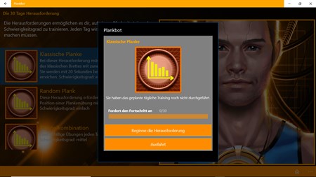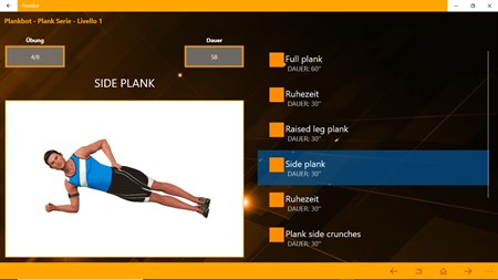 In fortgeschrittenen Levels kann der Timer für das Unterarmstütz an Ihre Bedürfnisse angepasst werden.
