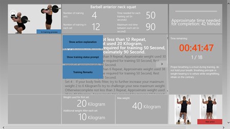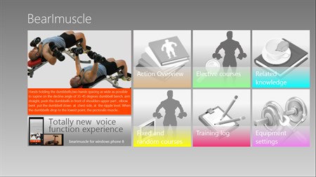 Real video, pictures, demonstrations and detailed action text commentary. In accordance with the muscle part and difficulty, reasonable classification can be based on personal preference, select fixed, random and elective choice of a variety of curriculum model for training, and automatically recorded training log. According to personal needs custom equipment, setting weight , number of training sets, action and time parameters, and can record the training Remarks.