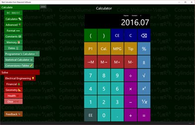 Free with no ads! Familiar and full featured calculator with advanced solvers. Programmable in BASIC; memory feature; date calculations; advanced robust and classical statistics, trigonometry functions; log and exponents (natural, base 10 and base 2). Advanced solvers for Electrical Engineering and Finance -- enter the number you know, and get the answers you need!