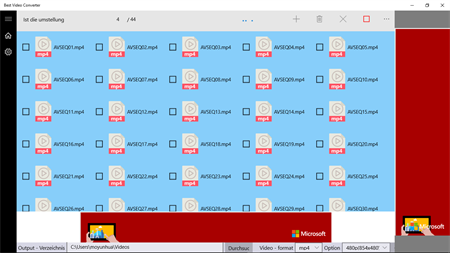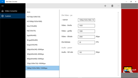 Batch-Video-Format-Konverter. Eine Vielzahl von Video-Format-Konvertierung. Unterstützung MP4, WMV, AVI Formatumwandlung. Verschiedene Auflösung Konvertierung: HD1080p, HD720p, 480p, 360p, 240p, Ntsc, Pal, Vga, Wvga, Qvga Umwandlung, können Sie auch die Umwandlung Auflösung anpassen. Volles benutzerdefiniertes Umwandlungsformat: Sie können die Zielvideogröße, die Bitrate, die Bildrate und andere Parameter vollständig anpassen. Verwenden Sie diese Software, können Sie das Video komprimieren, eine Videodatei, um die Bequemlichkeit der Internet-Übertragung zu reduzieren. Du kannst auch kein High-Definition-Video in High-Definition (1080p).