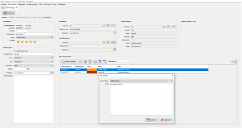Beim Hinzufügen einer neuen Bewerbung wird ein als Anfangsstatus markierter Status verwendet. Bei einer Statusänderung wird automatisch eine Bemerkung hinzugefügt, wodurch Sie die Statusänderung immer an den Daten nachvollziehen können.