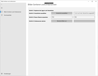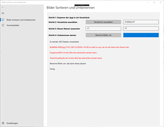 Kennen Sie die Schwierigkeit? Fotos auf Windows Phone, IOS, Android und auf den Spiegelreflexkameras und Freunde haben ebenfalls noch Fotos von z.B. der Silvesterfeier. Alle haben etwas andere Namen und sind nicht leicht sortierbar. Diese App räumt damit auf! Alle Fotos in ein Verzeichnis kopieren und die App starten. Einfach. Schnell. Sicher. Es werden alle von Windows unterstützten Bilder verwendet, wie z.B. JPG, NEF und PNG. Bitte die Bilder immer in ein separates Verzeichnis kopieren, so können keine Schäden an den Originalen entstehen.