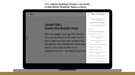 • NEU: Du kannst dein Leseerlebnis mit dem «Bionic Reading® Reader» nun nahtlos plattformübergreifend fortsetzen, da die letzte Leseposition nun gespeichert wird. • NEU: Lesezeichen ermöglichen es Dir nun, deine Lieblingsseiten zu markieren.