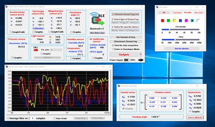 1. allows to set, communicate (by reading and notifying), use, display (in graphic and numeric ways) and save data from all sensors included in each of the SensorTags presented above;