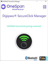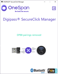 Digipass Bluetooth Manager enables a seamless pairing connection between OneSpan's Digipass SecureClick and the OneSpan DPBB (Bluetooth Bridge). The Bluetooth Manager allows you to manage multiple Digipass SecureClick devices.