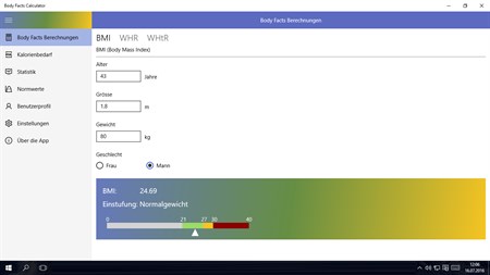 Achte auf deinen Körper und deine Gesundheit. Der Body Facts Calculator kann dich dabei unterstützen. Masszahlen wie der Body Mass Index (BMI), das Taille-Hüfte Verhältnis (WHR) oder das Taille-Grösse Verhältnis (WHtR) geben Aufschluss über dein Körpergewicht sowie die Verteilung deines Körperfetts. Die jeweilige Einstufung der Masszahl zeigt dir die gesundheitliche Relevanz deines aktuellen Gewichts. Dadurch kannst du jederzeit sehen, ob bei dir ein erhöhtes Gesundheitsrisiko für Herz- und Kreislauferkrankungen besteht.