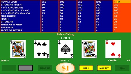 Introducing Bonus Poker, a casino simulation video poker game that is COMPLETELY FREE.