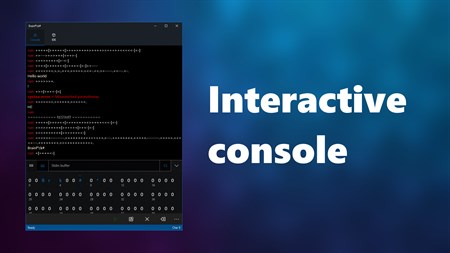 With a fully featured IDE that supports breakpoints, syntax highlight, autocompletion and more, an interactive console and lots of other features, this app offers the most complete programming experience in Brainf*ck on any platform. If your are a developer who knows how to write in C and you want to try something different, if you're just curious about this language, or if you've heard about it and you want to use it to create something crazy, this app offers everything you need to get you started.