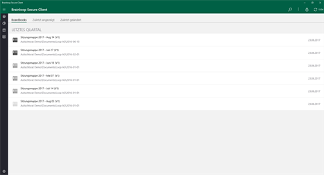 Mit Brainloop Secure Client können Sie direkt von Ihrem Tablet oder Smartphone aus auf Ihre Brainloop-Datenräume zugreifen und Ihre Dokumente und Dokumentensammlungen online und offline lesen.