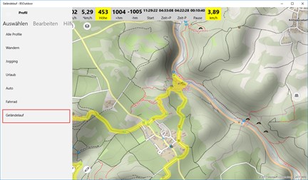 Strecken können aufgezeichnet werden, um sich z.B. die Länge, Durchschnittsgeschwindigkeit, Höhenmeter etc. anzeigen zu lassen. Es können eigene Profile (Wandern, Jogging, Urlaub etc.) angelegt werden. Aufgezeichnete Strecken werden unter dem aktuellen Profil gespeichert.