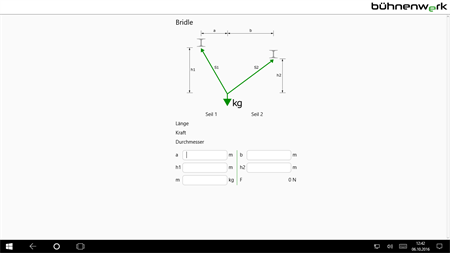• Dimensionierung von Anschlagseilen • Dimensionierung von Rundschlingen • Dimensionierung von Sicherungsseilen • Bridle • Masserechner • Einheitenrechner • Vergütungsrechner • Elektrotechnikrechner