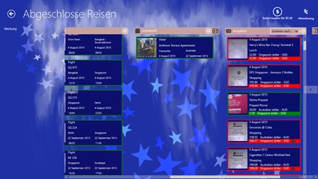 Business Trip-Manager ist ein professionelles Werkzeug zur Planung und Verwaltung Ihrer Geschäftsreisen. Business Trip-Manager ist nützlich für private Unternehmer und angestellte Mitarbeiter, die häufig auf Geschäftsreisen gehen. Sie können verschiedene Arten von Geschäftsreisen mit mehreren Zielen auch in verschiedenen Ländern auswählen. In Business Trip-Manager können Sie die Auslösungen und Umrechnungskurse für jedes einzelne Land gesondert festlegen. Die meisten aktuellen Umrechnungskurse können direkt aus dem Internet abgerufen werden. Ausgaben in Fremdwährung werden automatisch in Ihre Heimatwährung umgerechnet. Planen Sie und verwalten Sie alle relevanten Reisedaten wie Teilnehmer der Reise, Reise, Unterkunft und Spesen. Sie können nach privaten und erstattungsfähigen Aufwendungen unterscheiden und so einfach den Überblick über ihre Reisekosten behalten. Hängen Sie Rechnungen und Quittungen entweder als gescanntes Dokument an, oder machen Sie eine Aufnahme mit der Kamera Ihres Geräts. Speichern Sie reisebezogene Dokumente, wie Visum, ärztliche Atteste etc., im Aktenschrank. So haben Sie alle wichtigen Dokumente immer griffbereit! Business Trip-Manager erstellt einfache Rechnungen und Reisekostenabrechnungen, die Sie ausdrucken und an Ihre Kunden oder Arbeitgeber einreichen können. Sie können auch die Reisedaten zur weiteren Bearbeitung nach MS Excel exportieren.
