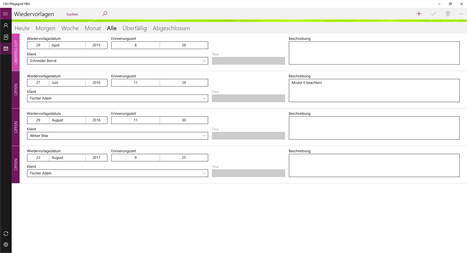 Die kostenfreie Version ist auf 3 Klienten limitiert. Die bezahlte Version ermöglicht die unbegrenzte Erfassung von Klienten sowie die Synchronisation mit der Microsoft Cloud. Der Datenbestand kann dabei auf bis zu 10 Geräte synchronisiert werden. Die Nutzung ist auf ein Jahr beschränkt wonach erneut eine Nutzungsgebühr anfällt. Die Funktion „Wiedervorlage“ ermöglicht eine Erinnerung auch bei nicht aktiver App über die Notification Funktion.