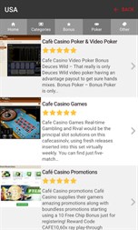 FEATURES: - Bookmarks; - "like system" inside; - weekly Cafe Casino no deposit bonus codes; - Cafe Casino online customer service.