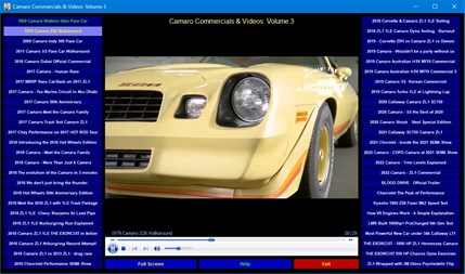 Camaro Commercials and Videos Volume 3 is a presentation of 50 more TV commercials and videos produced by Chevrolet to market the Camaro line to the world. This versio0n picks up where Volume 2 left off and continues to showcase the latest Camaro SS, LT1, COPO and other incredible Camaro performance vehicles and more. This fantastic collection will entertain you for hours.