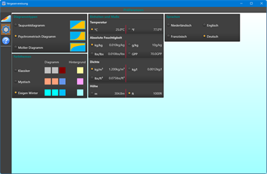 Sie können entweder Daten eingeben und die Ergebnisse anzeigen oder über das Diagramm schweben, während die App alle Ergebnisse sofort berechnet. Die App bietet drei Diagrammtypen zur Anzeige der Ergebnisse: Taupunkt, Psychrometrie und Mollier. Die beiden letzteren zeigen noch mehr Daten über die Luftfeuchtigkeit. Außerdem ändern sich diese Diagramme auch, wenn Sie die Höhe ändern, da die Luft dünner wird.