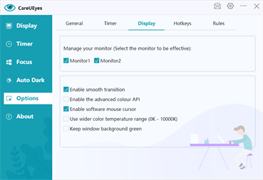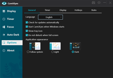 Über CareUEyes - Blue light filter, Brightness control, Dark mode