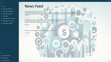 - Expertly Curated Content: Dive into a wealth of information covering everything from credit card cash advances to merchant cash advances, payday loans, and beyond. Learn the nuances of each option, their impact on credit scores, and how to leverage them without falling into debt traps. - Interactive Learning Tools: Engage with our in-app notebook for jotting down key takeaways, set personal financial goals with our questionnaire, and plan your learning journey with a weekly lesson scheduler. - Deep Focus Music Player: Enhance your learning experience with music designed to boost concentration and information retention. - Stay Updated: With our dedicated news feed, keep abreast of the latest trends, regulations, and opportunities in the financial sector, including exclusive listings of foreclosed assets. - Comprehensive Lesson Plans: From understanding the basics of cash advances to strategic planning for small loans, our app covers: * The Essentials of Cash Advances * Navigating Credit Card Advances * The Ins and Outs of Payday Loans * Merchant Cash Advances Decoded * Evaluating Impact on Credit Ratings * Pros and Cons: A Balanced View * Cash advance loan Calculator And much more!