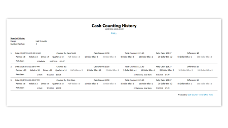Cash Counter is a cash counting software that was designed to help small business managers, retailers, cashiers or check-out personnel to balance & keep track of their cash tills and petty cash. Simply count each denomination in your till and enter it into the program to see if your till is balanced.