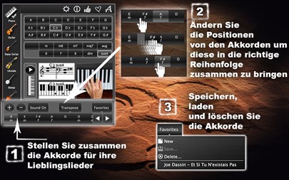 1 Tag GRATIS testen! Mit dieser hervorragenden Akkordsammlung werden Sie in der Lage sein die 7 beliebten Musikinstrumente (Klavier, Gitarre , E-Bass, Ukulele usw.) ohne Erfahrung zu spielen! Diese App enthält alle benötigte Akkorde, um alle Ihre Lieblingslieder begleiten zu können! Alle Musikinstrumente in der App sind miteinander verbunden und das gibt die einzigartige Möglichkeit, die Akkorde von einem Musikinstrument auf ein anderes Musikinstrument zu verwandeln! Profitieren Sie von der klaren und leicht zu bedienenden Benutzeroberfläche und lernen Sie die Akkorde kennen. Sie können: - die Akkorde in Notendarstellung, in Tastendarstellung, in Standardsaiten-Darstellung, in TAB-Darstellung und als farbige Fotos ansehen, - Akkordenklang vom echten Musikinstrument anhören, - Mit Hilfe von Drag & Drop die Akkorde in Ihre Dokumente einfügen, - Eigene Reihenfolgen von den Akkorden für Ihre Lieblingslieder festlegen, diese Reihenfolgen abspeichern, entfernen und wieder laden, - Die Akkorde in die, für Sie optimale, Tonalität transponieren.