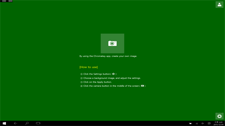 1. Click the Settings button. 2. Choose a background image, and adjust the settings. 3. Click on the "Apply" button. 4. Click the camera button in the middle of the screen.