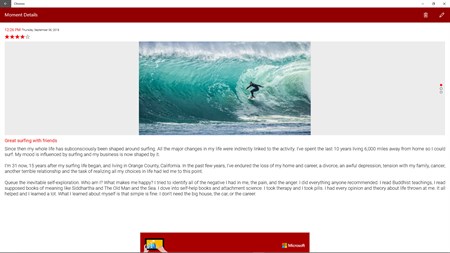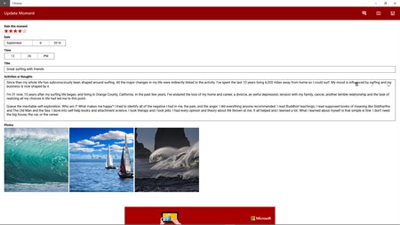 * Timeline- Moments are group by month and sorted in descending order. * Photos- You can easily view your moments with pictures. * Calendar - You can easily view your moments with the calendar