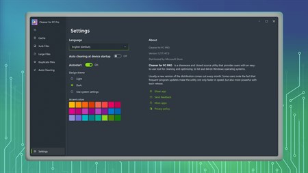 Cleaner for PC PRO ist ein wunderbares Instrument, um die Ordnung auf Ihrem PC wiederherzustellen. Es kann mit Tonnen von großen Dateien fertig werden und vielseitige Duplikate finden und löschen. Sie können den Cache des Systems und der Anwendungen mühelos bereinigen. Befreien Sie sich von unnötigen Dateien, die das System überlasten, und verbessern Sie die Leistung Ihres PCs erheblich. Richten Sie einen automatischen Reinigungsmodus ein und die App reinigt Ihren PC automatisch mit der angegebenen Häufigkeit. Genießen Sie die schöne und klare Benutzeroberfläche ohne Ablenkungen. Installieren Sie unsere Anwendung und Ihr Gerät wird niemals zu einem Dump vergessener Dateien.