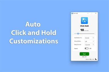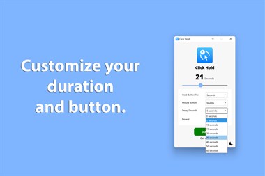 Simplify your repetitive tasks and reduce manual effort with Click Hold, a convenient application designed to automate mouse clicking and holding. This user-friendly tool empowers users to automate the process of clicking and holding the mouse button for prolonged periods, saving time and minimizing strain. Whether you're engaging in drag-and-drop operations, navigating interfaces, or executing continuous clicks, Click Hold offers a practical solution for various scenarios, enhancing your efficiency and reducing the need for constant manual input.