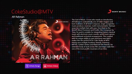 Awe-inspiring. Iconic. Magical •3 words that says all about the Coke Studio @MTV experience •Coke Studio @MTV is an inspiring platform where renowned and upcoming musicians from various genres get together to create an enthralling experience •Breaking barriers, expressing oneself, celebrating... there's so much music can do… Music is for the soul, not for the ears ! •This App brings you the rich and diverse music styles of India that brings together the biggest musicians of India combining independent, classical, folk , Sufi and popular genre music in an all new setting encompassing all 3 Seasons; Producers like Rahman, Clinton Cerejo, Amit Trivedi, Ehsaan, Loy, Hitesh Sonik, Karsh Kale among others. Enjoy the music, the experience and the re-live moments with this Music App and share the ultimate fusion project with your friends!