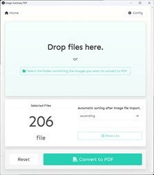 1. Drag and drop image data into the application. Or Specify the folder where the image data is stored. 2. specify the destination of the PDF file that contains the image data 3. click the Convert button