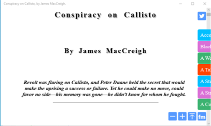 Revolt was flaring on Callisto, and Peter Duane held the secret that would make the uprising a success or failure. Yet he could make no move, could favor no side—his memory was gone--he didn't know for whom he fought. An adventure in space. This is the ebook version of the story, which was first published in 1943.