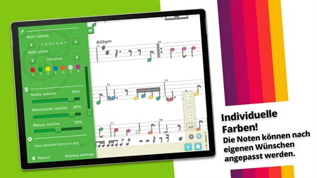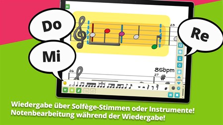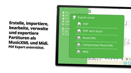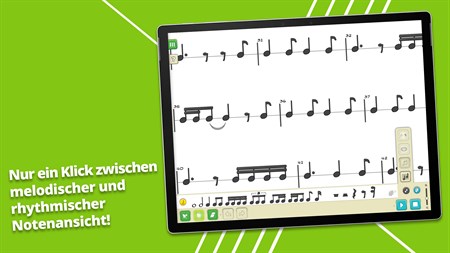 • Es entspricht dem Lehrplan und den Erwartungen von Musikpädagogen in der elementaren und allgemeinen Musikpädagogik • Sie können Arrangements im Klassenzimmer erstellen, importieren und reproduzieren und Ihre Schüler mitspielen lassen • Nutzen Sie Ihren Touchscreen, Smart- und interaktive Boards! Benutzerfreundliche Oberfläche für große Bildschirme • Führen Sie die Schüler mit dem Solfège-Feedback an das Lesen von Noten heran – Lernfunktion Nr. 1 • Animieren Sie Ihre Musiknoten, um jüngere Kinder zu begeistern – L.F. Nr. 2 • Passen Sie die Farbe jeder Musiknote an Ihre Instrumente im Klassenzimmer an – Boomwhackers, Orff, Glockenspiel oder andere Lesemethoden – L.F. Nr. 3 • Wechseln Sie in Sekundenschnelle von der melodischen zur rhythmischen Ansicht des gesamten Notensystems – L.F. Nr. 4 • Lassen Sie Ihre Schüler komponieren und die Noten während der Wiedergabe ändern, um ihre Hörfähigkeiten zu entwickeln – L.F. Nr. 5 • Kinder können es zu Hause verwenden und Ihre Musikdateien importieren • Zugänglichkeitsoptionen für Farbenblindheit • Mehrere Notensysteme für Klavier, Übungen und Arrangements für kleine Schulbands • Importieren Sie Ihre Arbeit aus zuvor verwendeter Software oder Ihren bevorzugten Online-Inhalten (MusicXML oder MIDI) • Partituren exportieren und mit Ihren Schülern teilen (MusicXML, MIDI oder PDF)