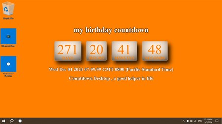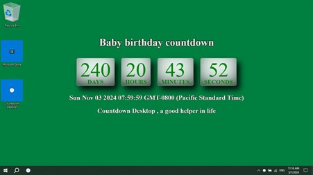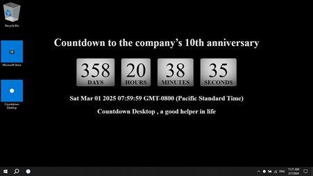 Countdown Desktop is a desktop customization utility for Windows. It allows users to display user-generated customizable desktop countdown on wallpaper. Counting remaining days or passed days with Countdown Desktop feature. Countdown your special dates. It's quick and easy!