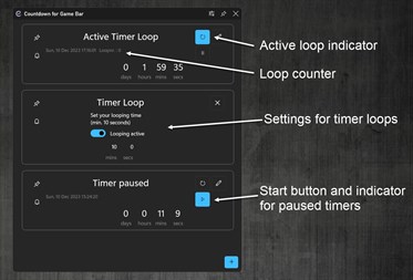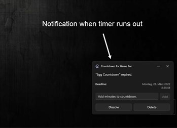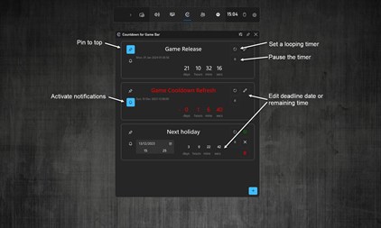 Diese App soll es einem ermöglichen, mehrere Countdowns für verschiedenste Anlässe zu setzen. Man kann das Ziel-Datum setzen, indem man entweder die verbleibende Zeit eingibt, oder das Datum + Uhrzeit bis zum Ereignis.