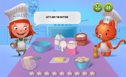 It's time to bake yummy cupcakes! Molly and Cleo are in the kitchen waiting for you! Follow the recipe for these delicious treats and decorate them. A cooking game where you follow a cupcake recipe. Yummy!