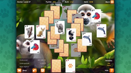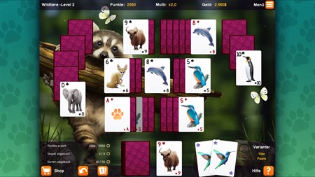 Spielen Sie viele, herausfordernde Level zu den Themen Haustiere, Farm- und Wildtiere oder exotische Tiere. Erlernen Sie mit der spielinternen Hilfe schnell und einfach die unterschiedlichen Solitaire Varianten.