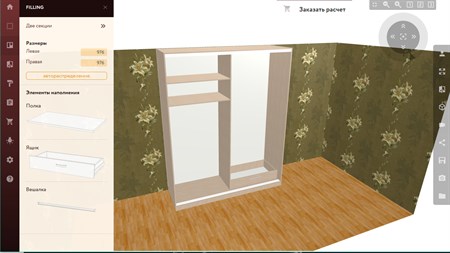 Воспользовавшись нашим конструктором 3D вы сразу расставите для себя приоритеты в необходимых составляющих вашего будущего шкафа купе, чтобы упростить процедуру покупки мебели. Оно очень удобное и простое, он позволяет пользователю в создавать дизайн-проекты шкафов-купе и мебельных комплексов.