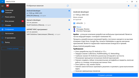 Официальное приложение сайта PAБOTA.TUT.BY для поиска работы поможет вам: