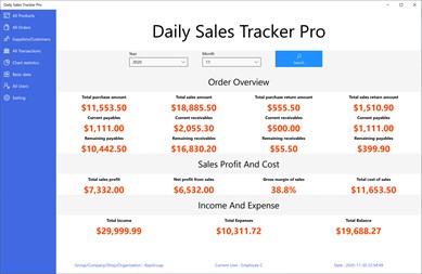 The general purchase, sales and inventory (DailySalesTrackerPro) is a business tool that supports simultaneous operation of multiple users and multiple stores (companies/teams) and real-time data synchronization. One administrator (boss) manages multiple sub-users (employees).