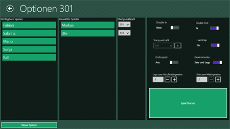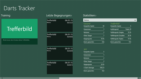 Derzeit wird neben dem Spieltyp 301 auch die Analyse deines Trefferbildes unterstützt. Spiele vom Typ 301 kannst du für 1-5 Spieler nach deinen Vorlieben konfigurieren und so bspw. die Startpunktzahlen individuell einstellen, die Modi Double In & Double Out aktivieren oder die Anzahl der nötigen Gewinnsätze bestimmen. Alle erfassten Partien werden lokal auf deinem Gerät gespeichert, sodass sie jederzeit abrufbar sind und du dir die zugehörigen Statistiken anzeigen lassen kannst. So kannst du auch die Entwicklung deines Dartspiels nachverfolgen und eventuelle Schwachstellen aufdecken.