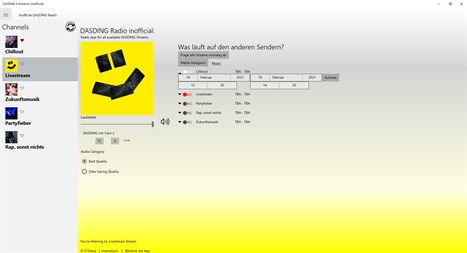 Diese App ermöglicht dir schnell, einfach & unkompliziert die DASDING Radiostreams auf deinem Windows 10 PC/Laptop anzuhören, ohne erst noch den Web-Browser zu öffnen.