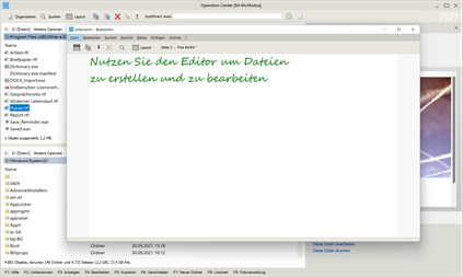 Schneller & zuverlässiger Dateimanager mit zwei Dateifenstern und ZIP- und FTP-Unterstützung. Dank Drag & Drop mit akustischer Rückmeldung lassen sich Dateien und Ordner intuitiv kopieren und verschieben. Die Dateivorschau zeigt Dateien an, ohne dass sie geöffnet werden müssen. Neben dem Dateimanager sind ein Editor, eine Fotoverwaltung und verschiedene Werkzeuge zur Wartung des PCs enthalten.